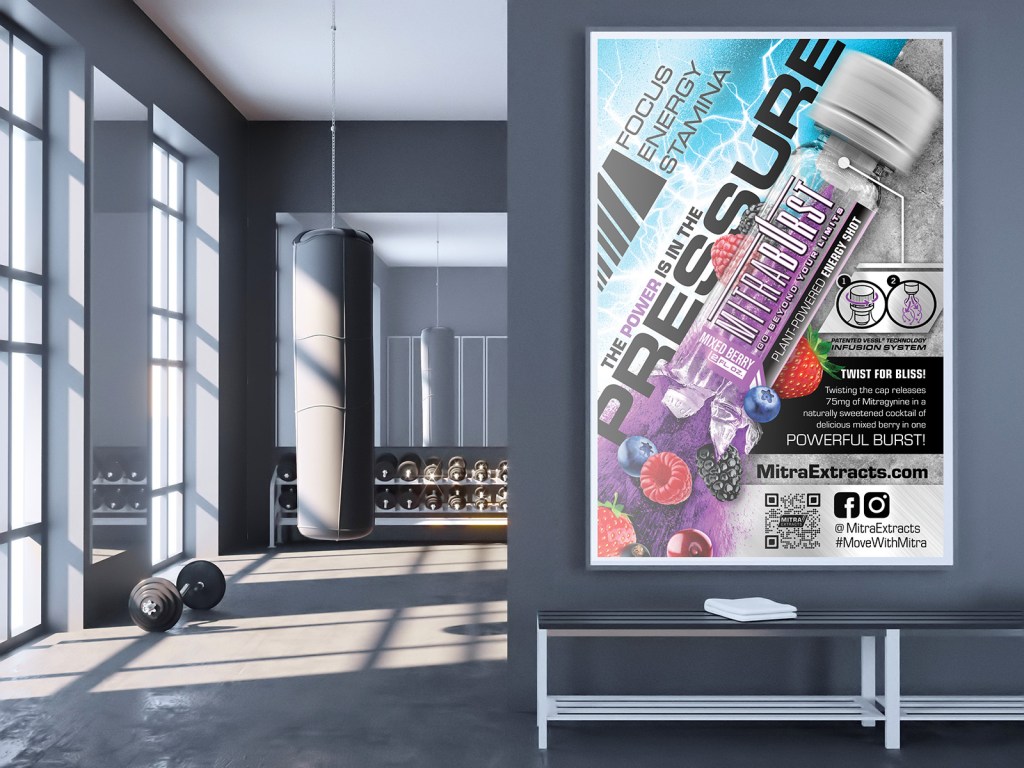 Mitra Extracts is a line of Mitragyna Speciosa supplements targeted towards dedicated lifestyle body builders and fitness fanatics. With a demographic that demands the very best, coupled with the rather high production cost and retail price inherent in these supplements, a sleek, engaging, modern aesthetic using high-end labeling and packaging materials was created.
